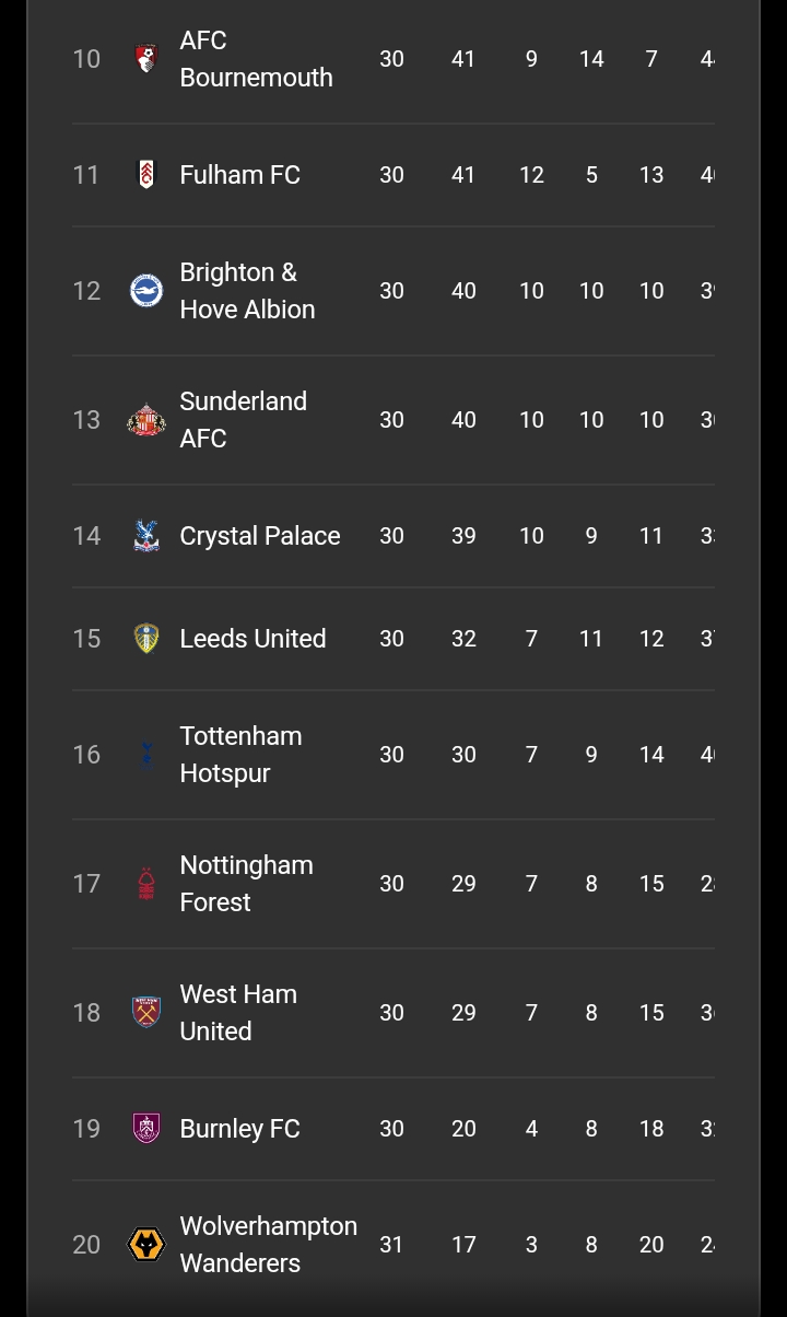 Meanwhile, perhaps the most worrying signs are coming from Wolverhampton Wanderers, who appear to be running out of time to save themselves. Performances have lacked urgency, confidence seems shattered, and with every passing match, the fear of relegation becomes more real.