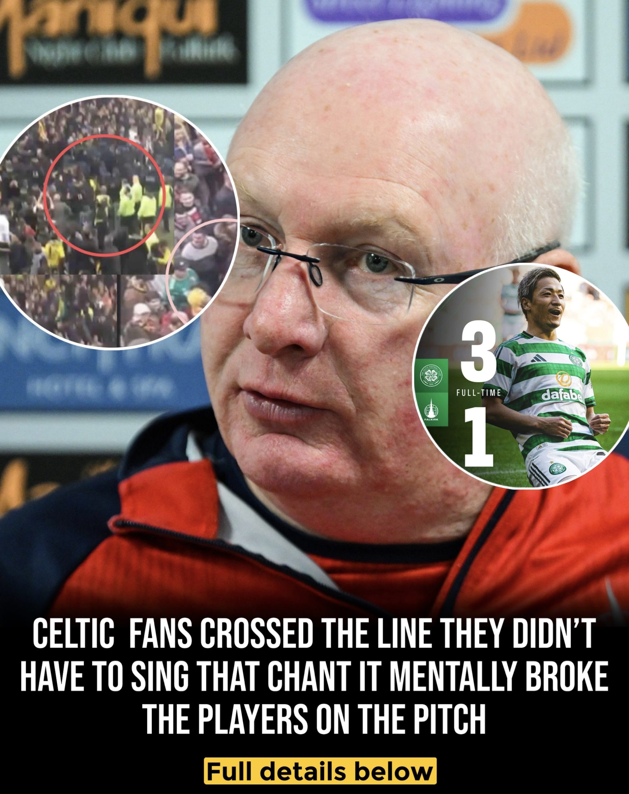 “Celtic fans crossed the line. They didn’t have to sing that chant. It mentally broke the players on the pitch. At that moment, we were still in the game, trying to stay organised, but it became very difficult for some of the lads to handle.”