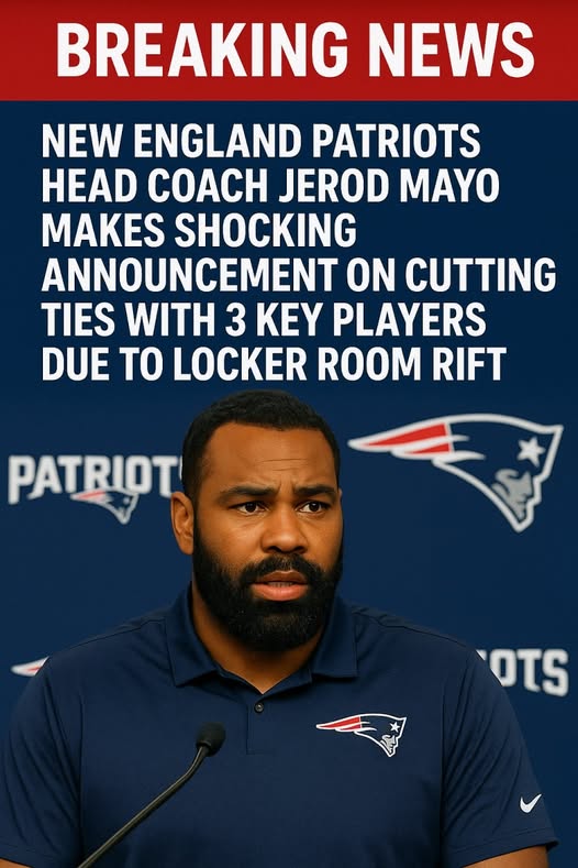 In a move that has sent shockwaves through the NFL community, New England Patriots head coach Jerod Mayo has announced the release of three key players from the team — a decision he described as “painful but necessary” during a press conference held earlier today at Gillette Stadium.